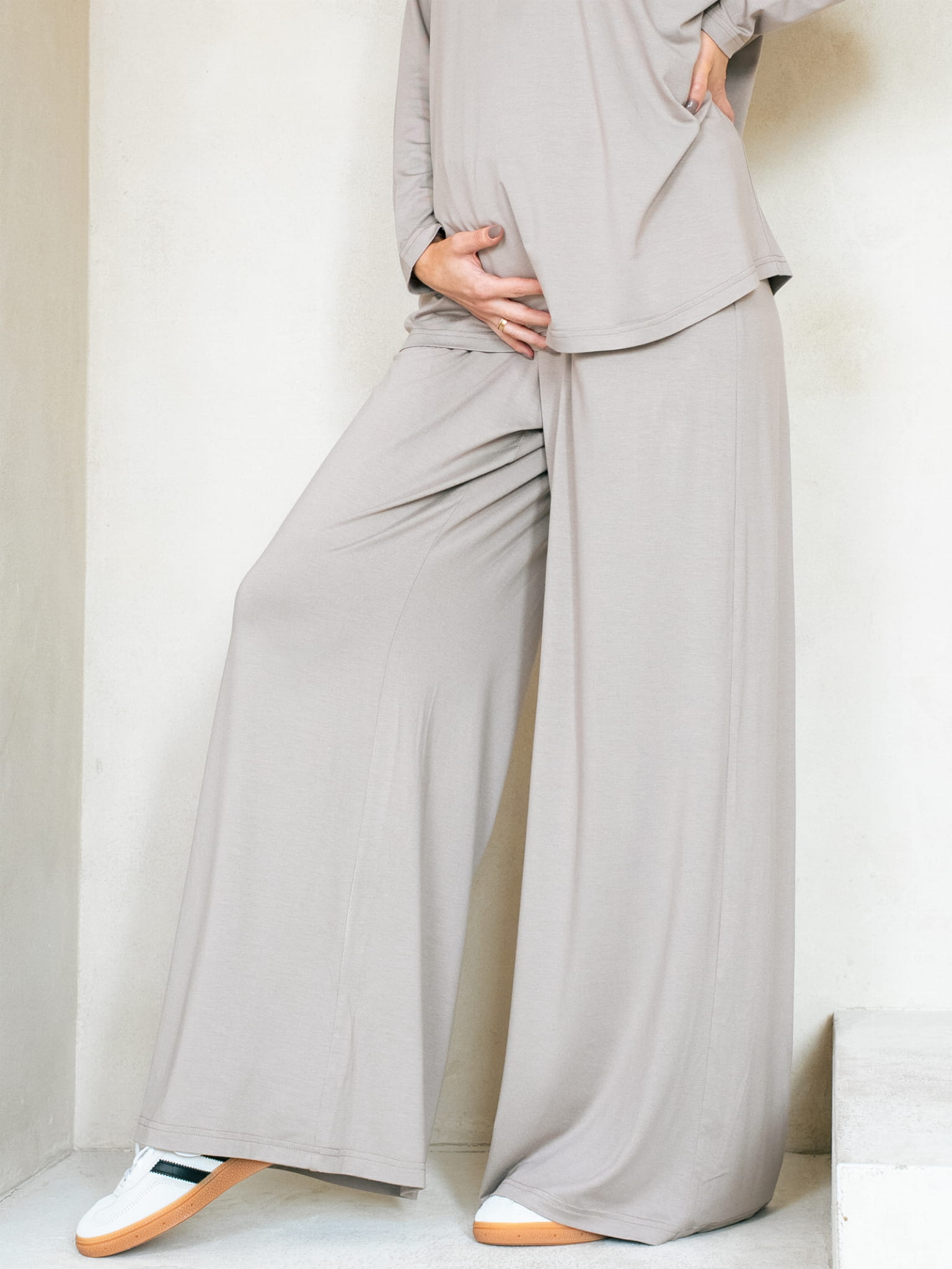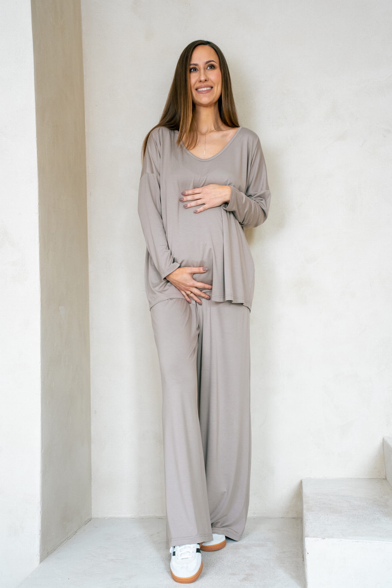 Wraz z koszulką do karmienia MOCHA tworzy idealny zestaw do noszenia w ciąży typu homewear, do spania, ale też stylowy i nadający się na wyjście do znajomych, na zakupy czy do kawiarni.