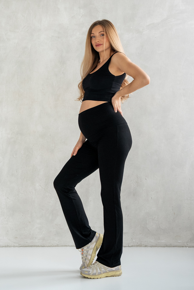 Czarne spodnie ciążowe z wysokim, elastycznym pasem – stworzone, by otulać Cię miękko jak poranna kawa i wspierać na każdym etapie macierzyństwa.